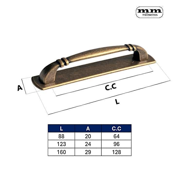 -Medidas: 88x20mm (Entre Ejes: 64mm) / 123x24mm (Entre Ejes: 96mm) / 160x29mm (Entre Ejes: 128mm).