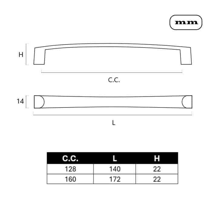 -Material: Zamak. -Acabado: Hierro Envejecido. -Medidas (Distancia entre ejes): 128mm / 160mm. -Fondo: 22mm. -Incluye 1 Tirador.