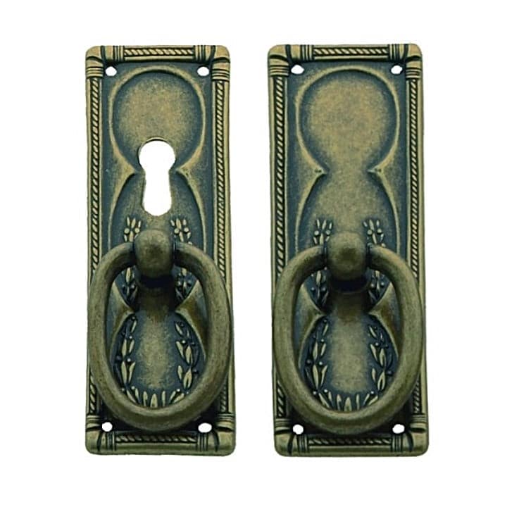 Tirador clásico con placa y anilla para muebles, cajones, puertas de armario…etc.
