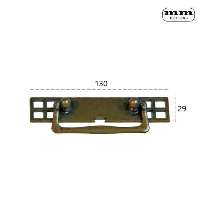 -Material: Latón. -Acabado: Envejecido Manchas. -Medidas: 130x29mm. -Incluye 1 Tirador.