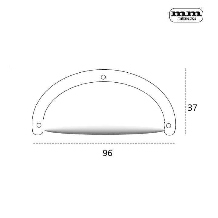 -Material: Latón. -Acabado: Plata Antigua / Níquel Brillo. -Medidas: 96x37mm (Ancho x Alto). -Incluye 1 Tirador.