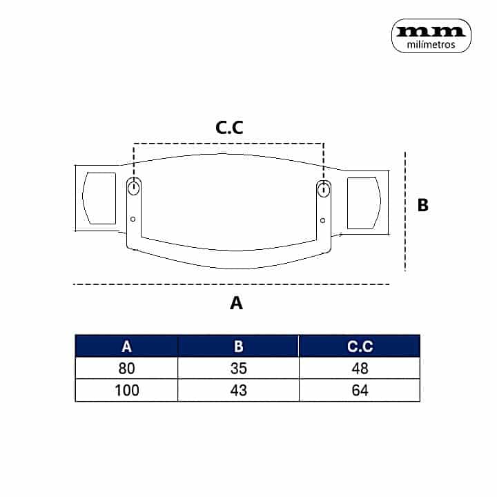 -Material: Latón. -Acabado: Envejecido Manchas. -Medidas: 35x80mm / 43x100mm (Alto x ancho). -Distancia entre ejes: 48mm / 64mm. -Incluye 1 Tirador.