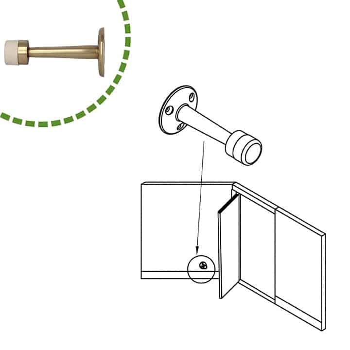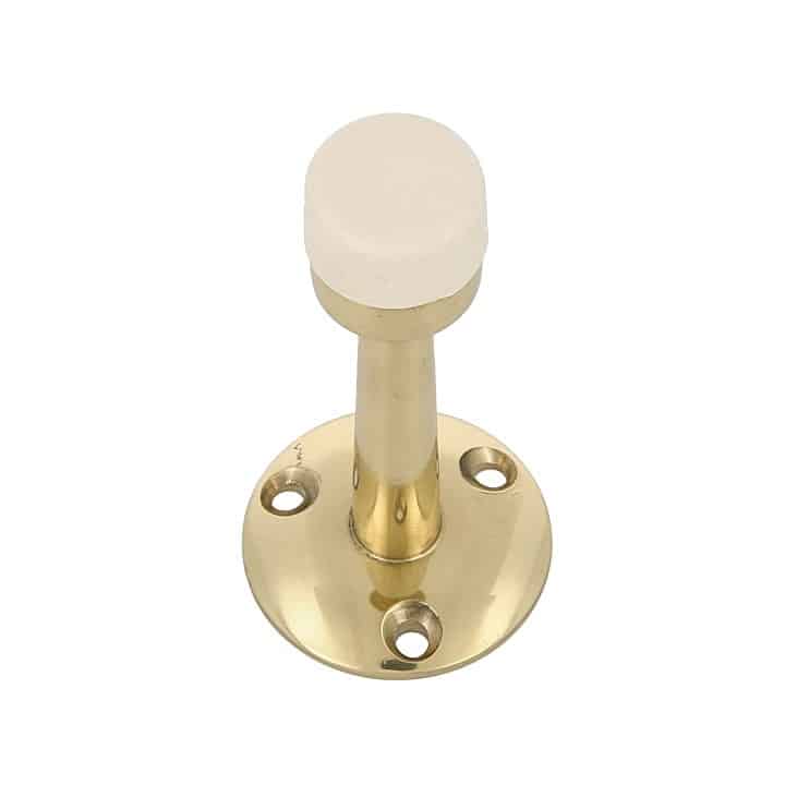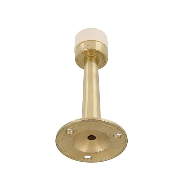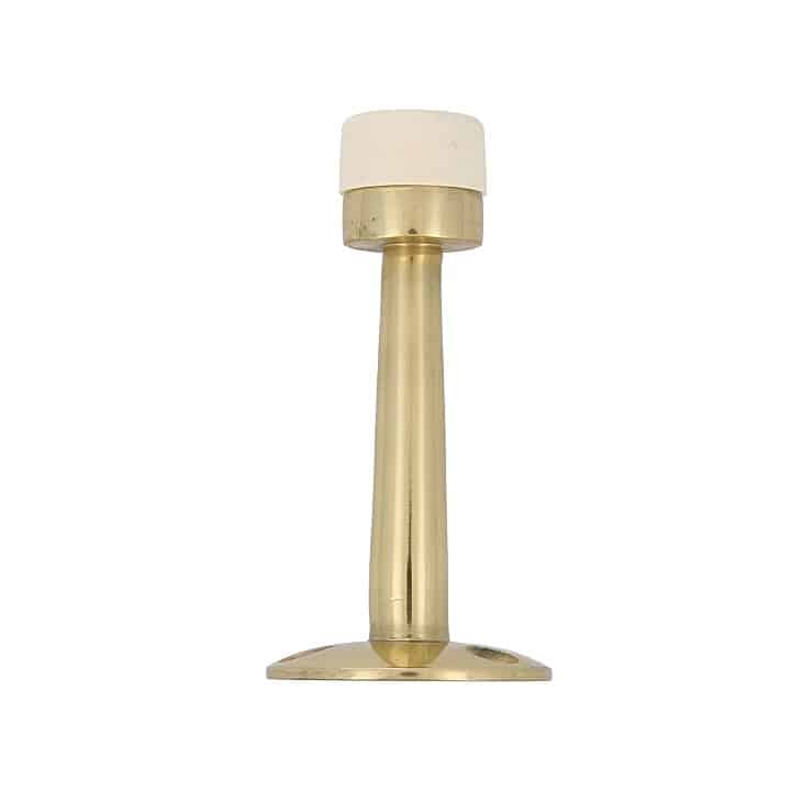 Tope de puerta de latón para puertas de paso. Para colocación en la pared. Con goma blanca.