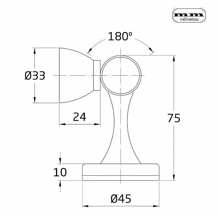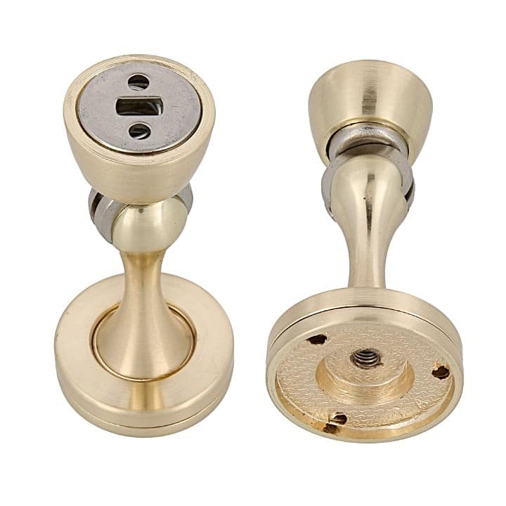 -Material: Zamak. -Acabado: Oro (Dorado). -Medida: Ø45x75mm. -Instalación: Suelo o Pared. -Incluye 1 Tope + accesorios de fijación.